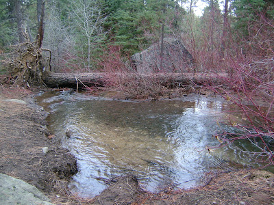 On our way back towards the car, we took the trail on top of the rim, which goes through a burn. No pine needles underfoot, just mud and lots of tracks. Footprints of joggers, hikers, bike tires, dogs...